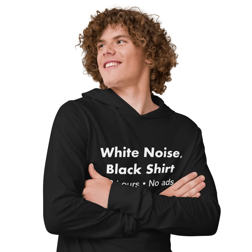 "White Noise, Black Shirt" • Unisex Hooded Long Sleeve Tee • Bella+Canvas